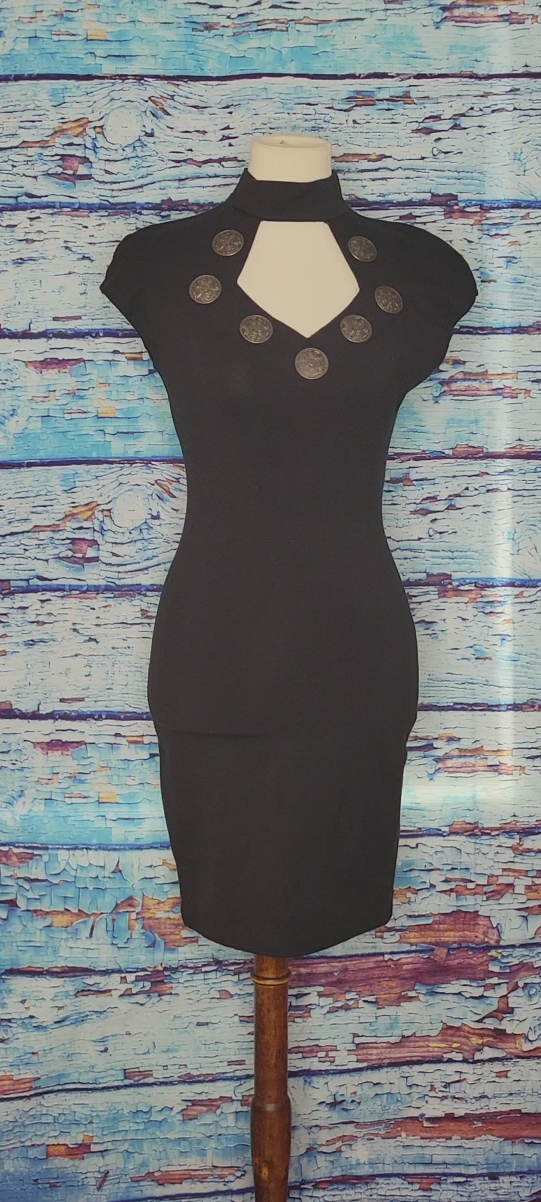 VTG 90's Black Sheath Dress w/ Cutout Chest