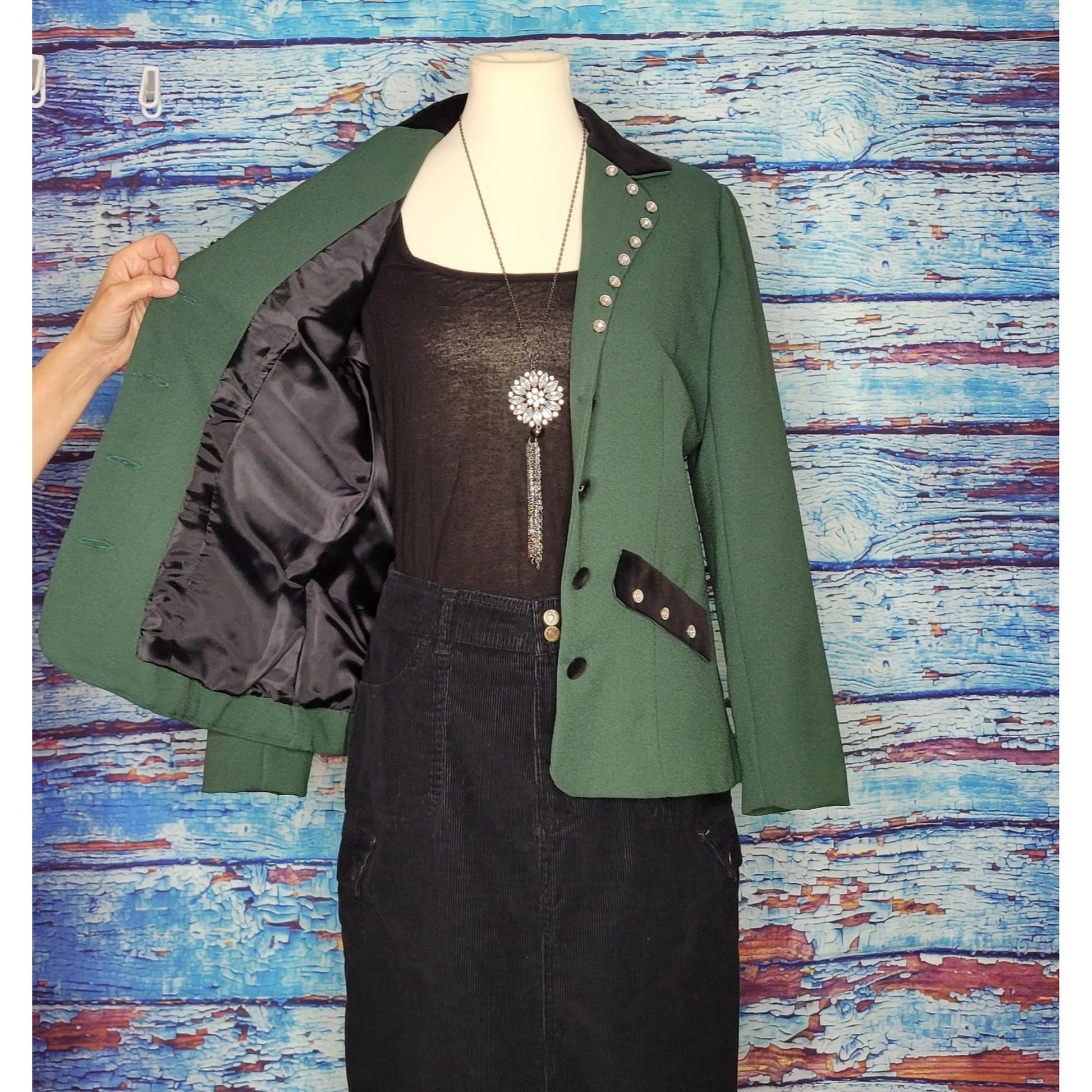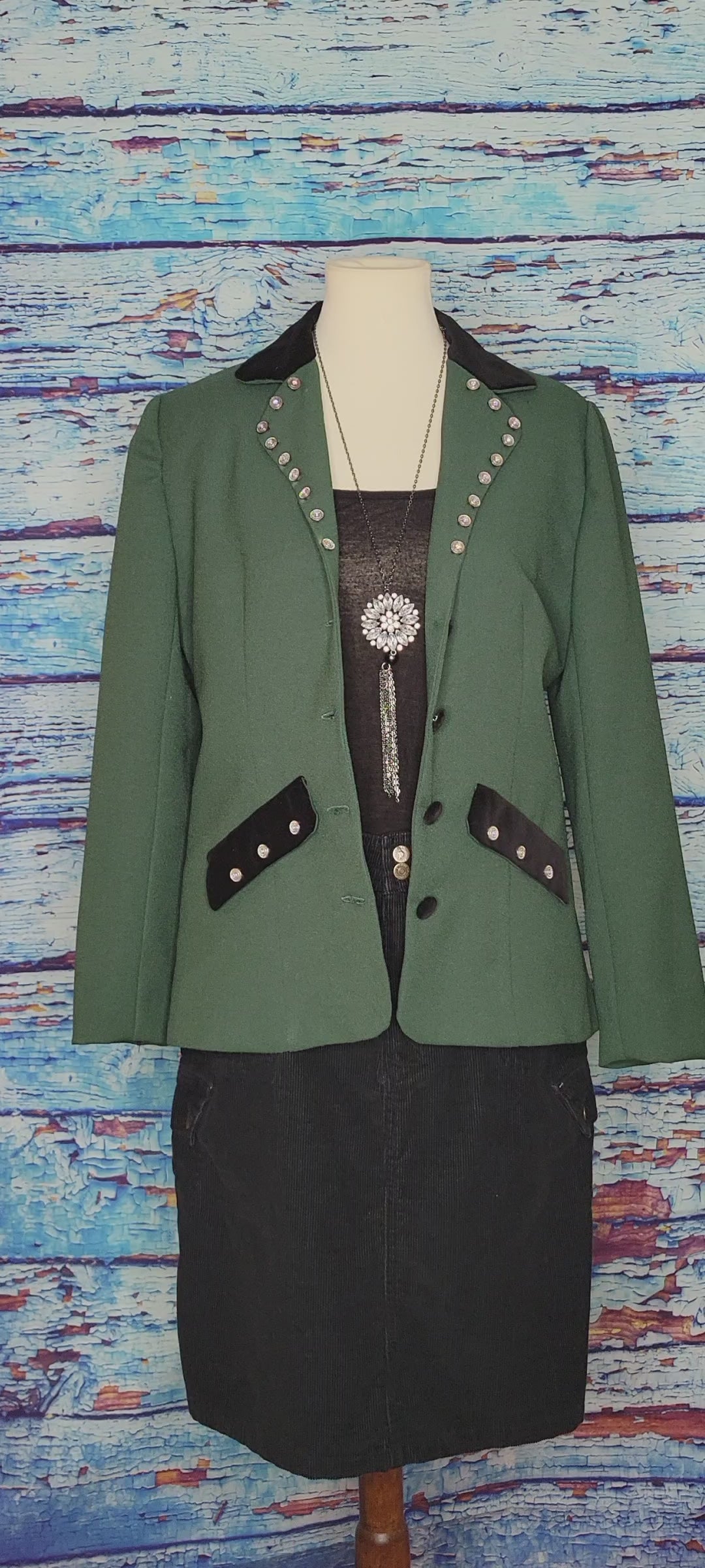 VTG Beautiful Green Blazer with Detailed Buttons and Velour