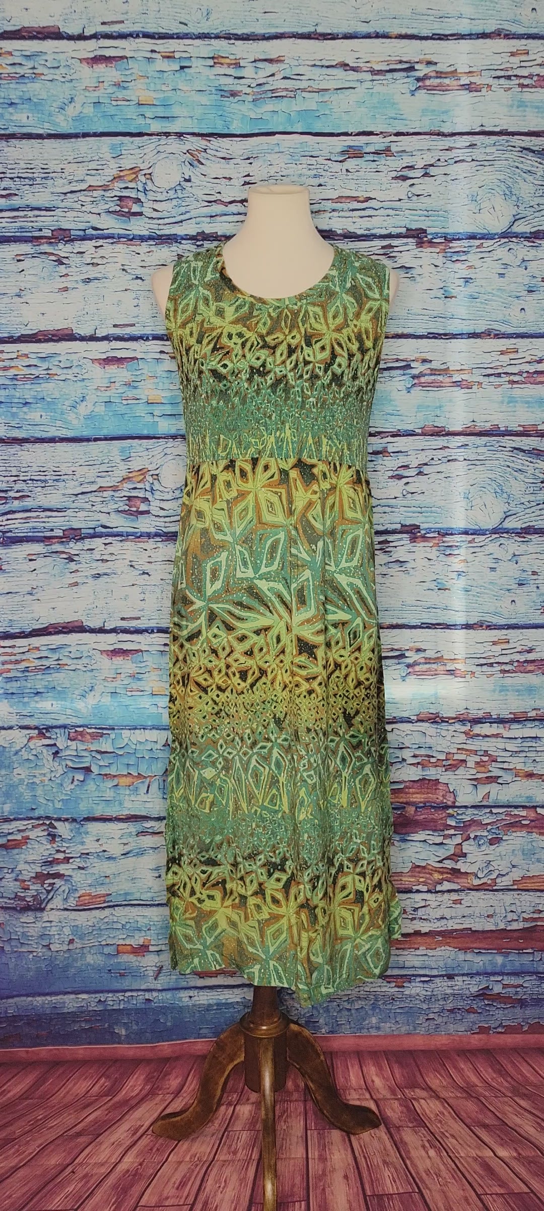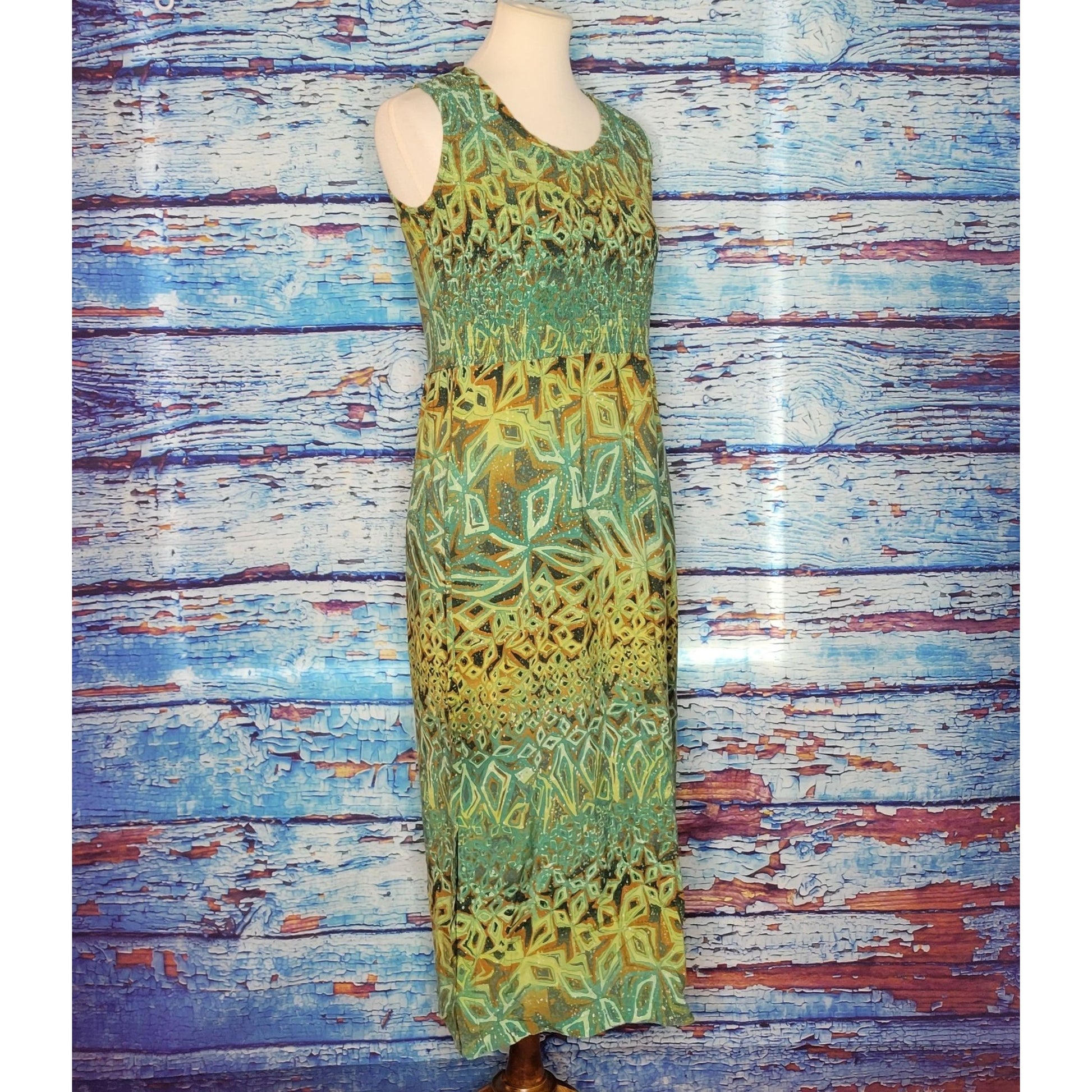 VTG Green Foliage Print Maxi Dress